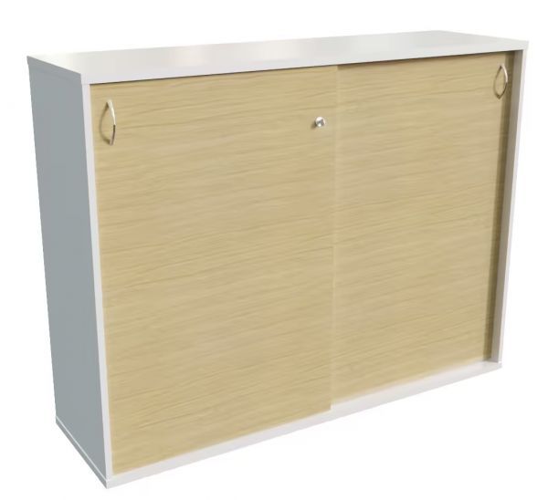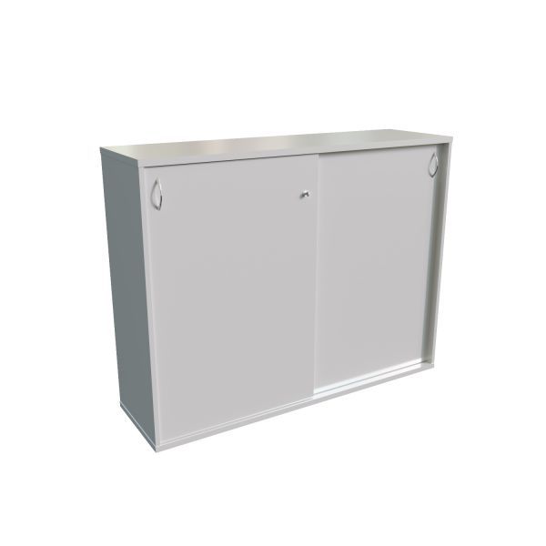 Шкаф-купе для документов. Ширина шкафа — 1430 мм (равна ширине двойного бенча) и задняя стенка из ЛДСП в цвет каркаса, позволяют располагать его в качестве завершающего элемента в двойных бенч-системах. Вертикальные элементы каркаса шкафа из ЛДСП толщиной 16 мм с кромкой ПВХ толщиной 0,4 мм. Материал топа изготовлен из ЛДСП толщиной 25 мм с лицевой кромкой ПВХ толщиной 2 мм. Материал каркаса и задней стенки изготовлены из ЛДСП толщиной 25 мм, кромка ПВХ толщиной 0,4 мм. Двери — купе с замком, цвет белый. Ручки — пластиковые в форме прямоугольной скобы, цвет — хром матовый. Внутри шкафа установлены две полки толщиной 16 мм с регулировкой по высоте в двух положениях. Количество полок — 2 штуки. Подпятники не регулируемые.