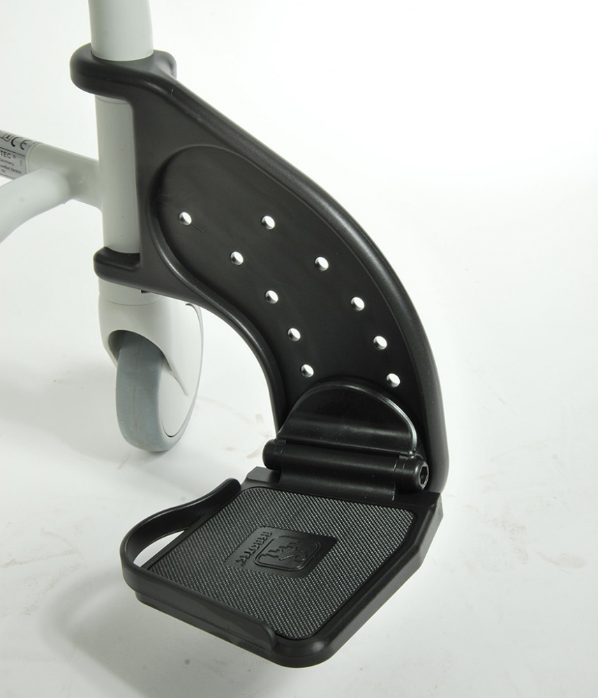 Модель оснащена колесами, что облегчает передвижение санитарного устройства. Для безопасности больного задние колеса оснащены тормозом, а для комфорта обслуживающего персонала стул имеет дополнительную перекладину на спинке, подобно ручке в кресле-каталке. В комплекте идет съемное судно, однако использовать стул можно и без него – конструкция имеет возможность наезда на туалет для быстрого пересаживания на унитаз.