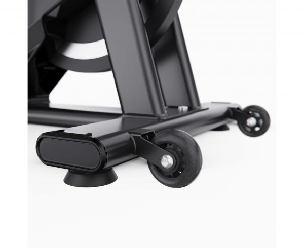 Тренажер отличается компактными размерами: 117 х 53 х 118 см, и рассчитан на максимальный вес пользователя до 150 кг. Удобство в использовании обеспечивают транспортировочные ролики, компенсаторы неровности пола и подставка под планшет.