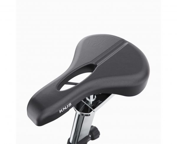 Велотренажер имеет широкие возможности настройки посадки. Сиденье регулируется в 10 уровнях по вертикали, в 7 уровнях по горизонтали, а также по углу наклона. Руль настраивается в 8 вертикальных и 7 горизонтальных положениях. Размер сиденья — 26 х 15,5 х 4,5 см. Высота от сиденья до пола — от 87 до 104 см, что делает модель универсальной для пользователей разного роста. Удобство в использовании обеспечивают транспортировочные ролики, компенсаторы неровности пола и подставка под планшет.