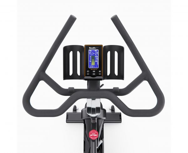 На LCD-дисплее с синей подсветкой отображаются все необходимые параметры: скорость, время, дистанция, сожжённые калории, мощность (ватт), обороты в минуту и пульс (для измерения пульса необходимо использовать нагрудный ремень, не входит в комплект). Консоль включает 15 тренировочных программ: ручной режим, начинающий (4 программы), продвинутый (4 программы), спортивный (4 программы), кардио и тренировку с постоянной мощностью. Поддержка Bluetooth позволяет подключить тренажер к нагрудному пульсометру.