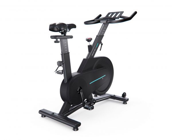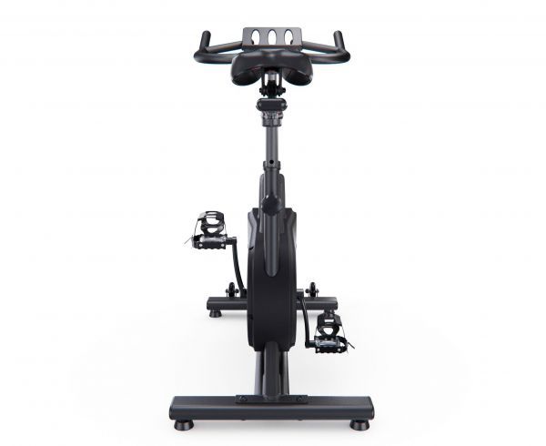Маховик массой 15 килограмм обеспечивает плавный ход и регулировку интенсивности нагрузки. Возможность крутить педали в обе стороны добавляет разнообразия в тренировочный процесс. Ремень, обернутый вокруг маховика, обеспечивает уровень шума не более 52 дБ, делая спин-байк идеальным вариантом для домашнего использования.